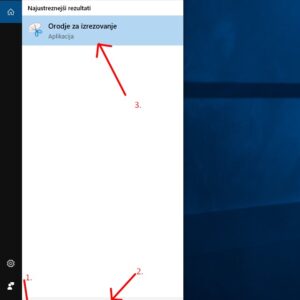 1. V računalnikih, z Windowsi 10, imamo orodje za izrezovanje že nameščeno skupaj z windowsi. Da ga odpremo kliknemo na lupo levo spodaj in napišemo orodje za izrezovanje ali snipping tool (angleško)